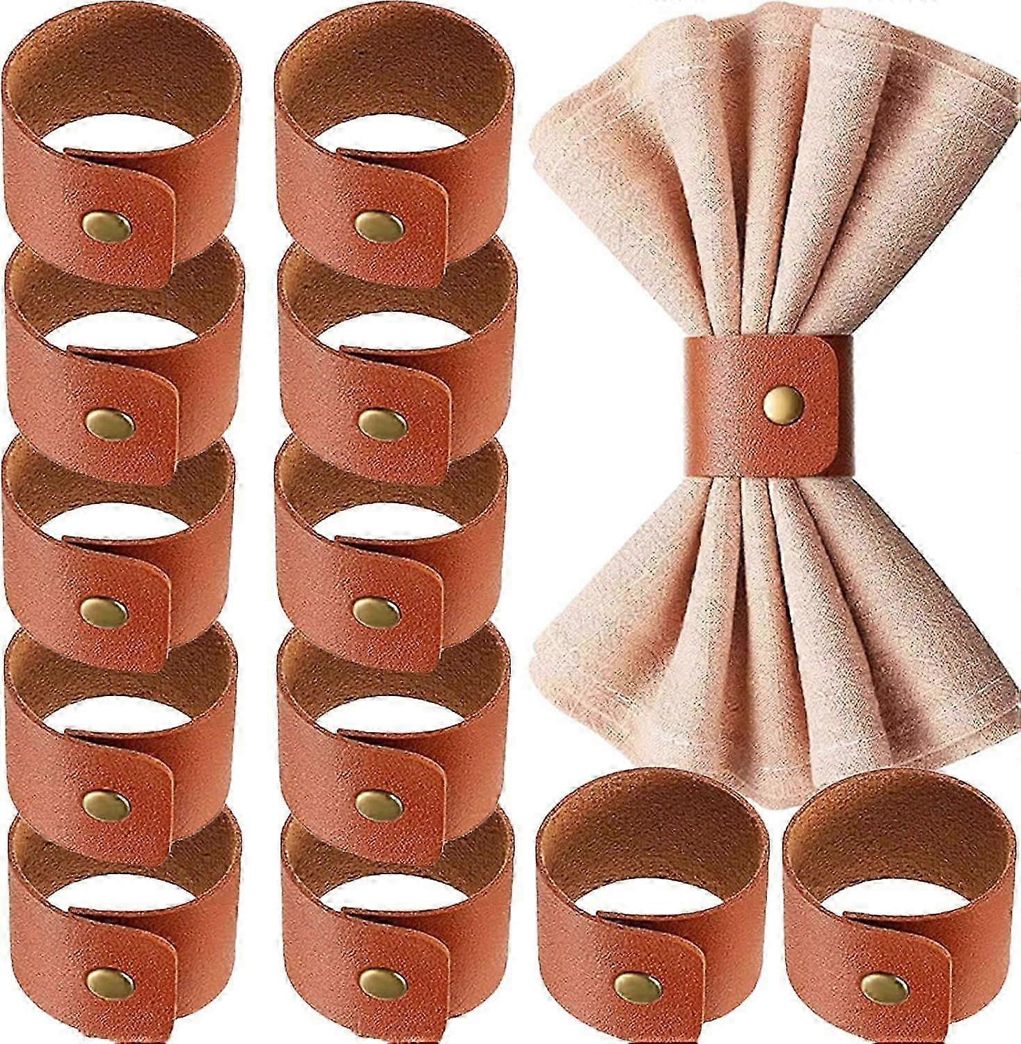 2025 Latest Model 12 PCS Leather Napkin Rings Vintage Buckle Napkin Holder for Table Decor