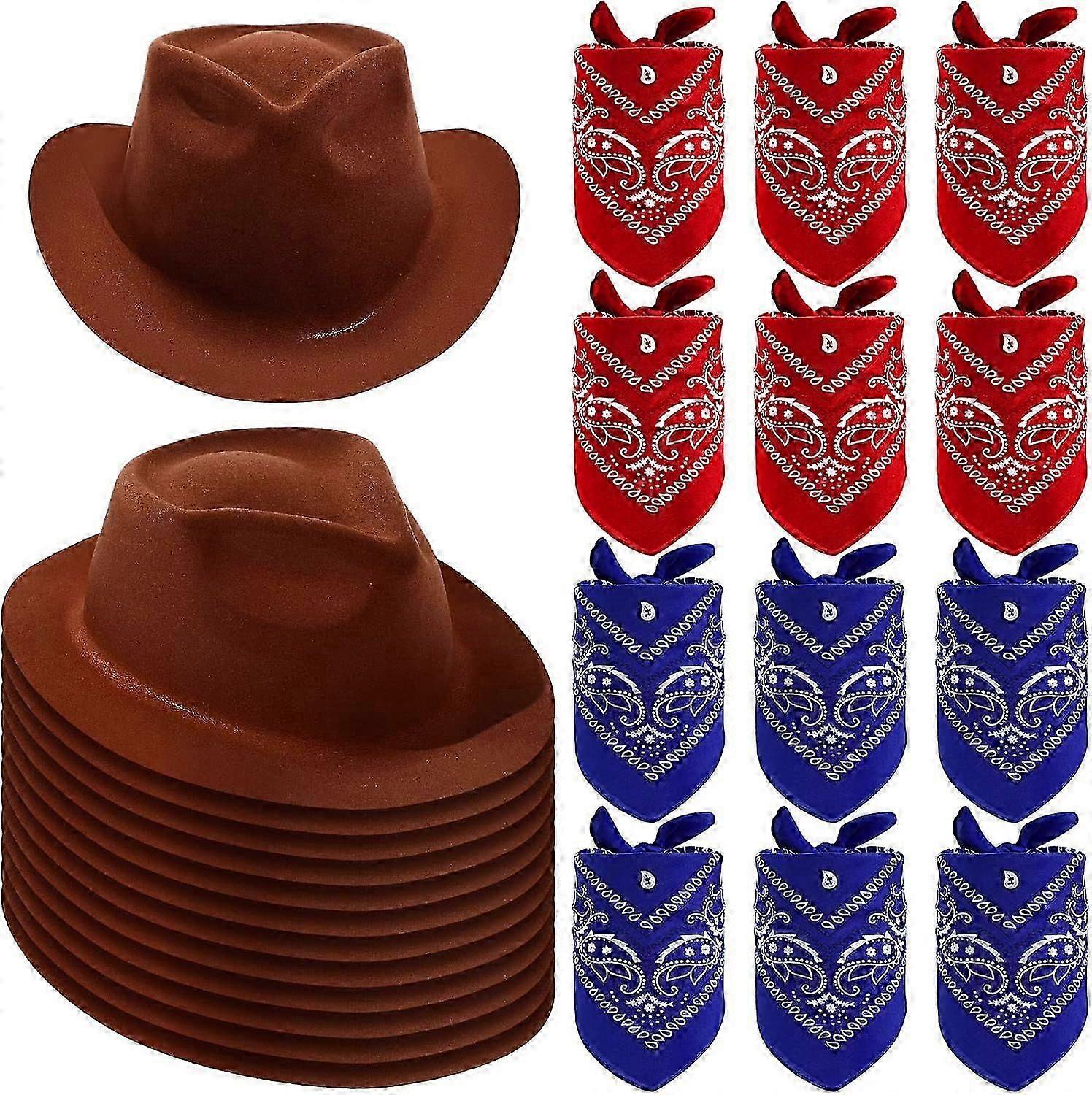 2025 Latest Model 24 Pieces Western Cowboy Hat Set, Felt Cowboy Themed Party Hats with Pai