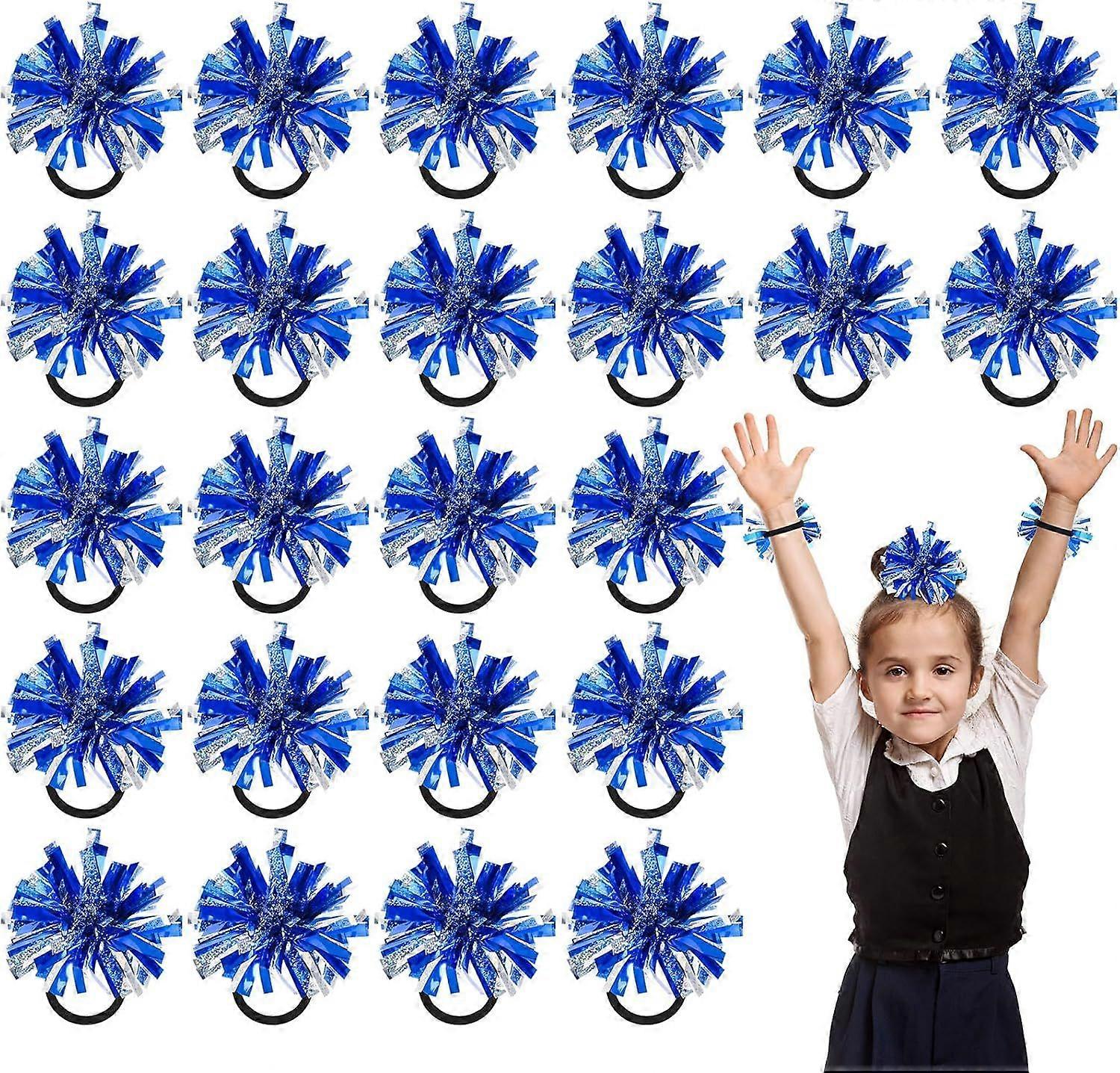 2025 Latest Model 24 Pcs 2 Color Mini Pom Poms Hair Ropes for Cheerleading 4 Inch Elastic