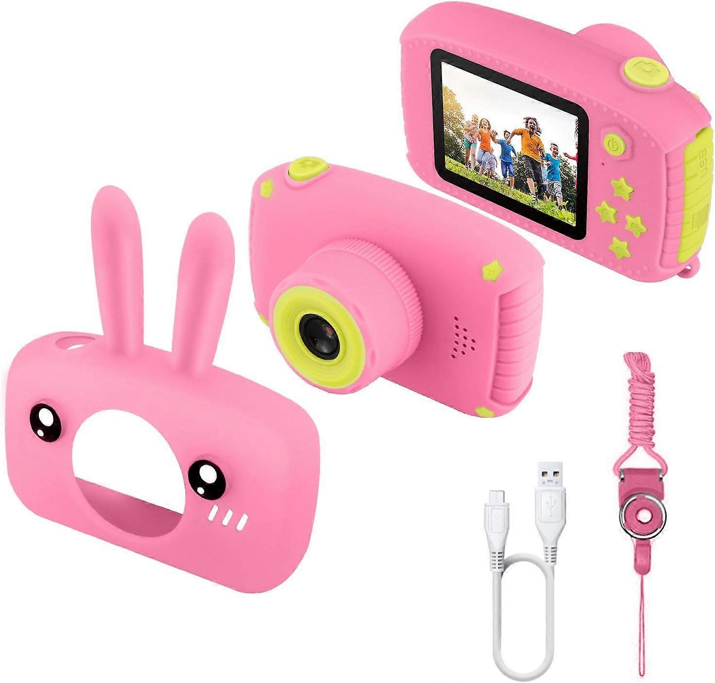 [Perfect First Camera] --- This is a kids camera with 2.0 inch screen size, which is ideal as your kid's first camera. Suitable for children from 3 years old to learn and develop their creativity while having fun! An excellent toy to enhance their creativity. [12.0 megapixels] --- High quality for 12 megapixels and 1080p HD video with a 2.0 inch colorful display screen and 28 types of cute filters. Max supports 32GB micro SD card. (SD card is not included) A great toy for children to explore the world and record their childhood, which can capture a wonderful and clear moment [Built-in memory, support USB charging and file transfer] --- Without micro SD card (micro SD card is not included in the package), you can take and store 50 photos (excluding video), and can load and transfer files via USB, No need to worry about replacing the battery. [Mini size and drop resistant design] --- This cute kids camera has portable mini size, light weight and lanyard design, which allows kids to take it anywhere for fun. outdoor events like a picnic, camping and hiking. With shockproof silicone protective shell, which makes the camera more durable and safer. [Not just a camera] --- Built-in puzzle games like Tetris and Snake will bring more fun to children during the trip. The feature richness and high cost efficiency make this smart digital camera a perfect gift for children for birthday, Christmas and New Year.