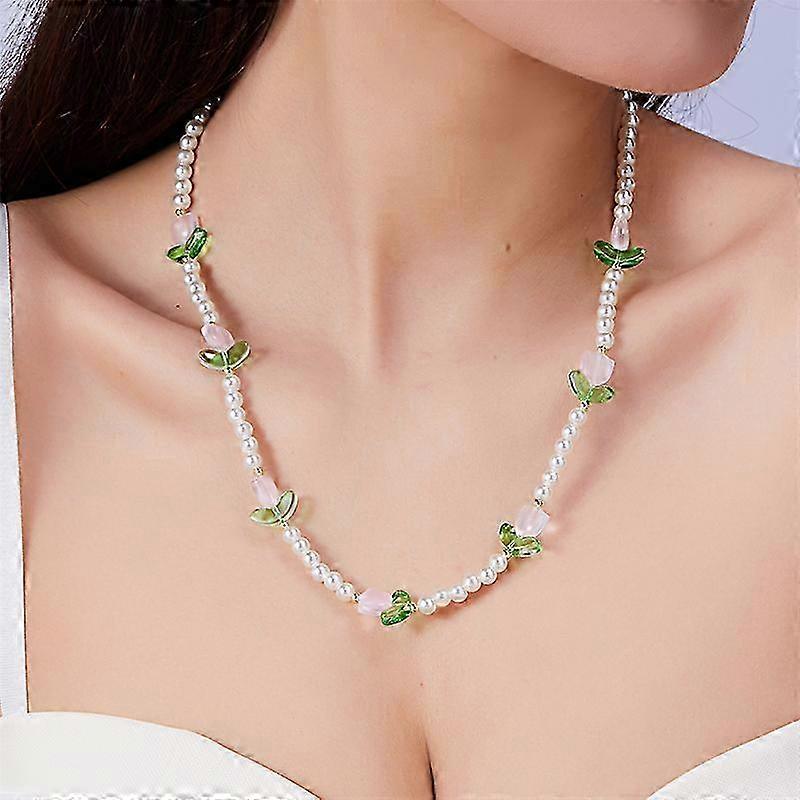 2025 New Fashion Pearl Tulip Bracelets Necklace for Women Light Luxury Temperament Design Senior Sense Bracelet Party Jewelry Set