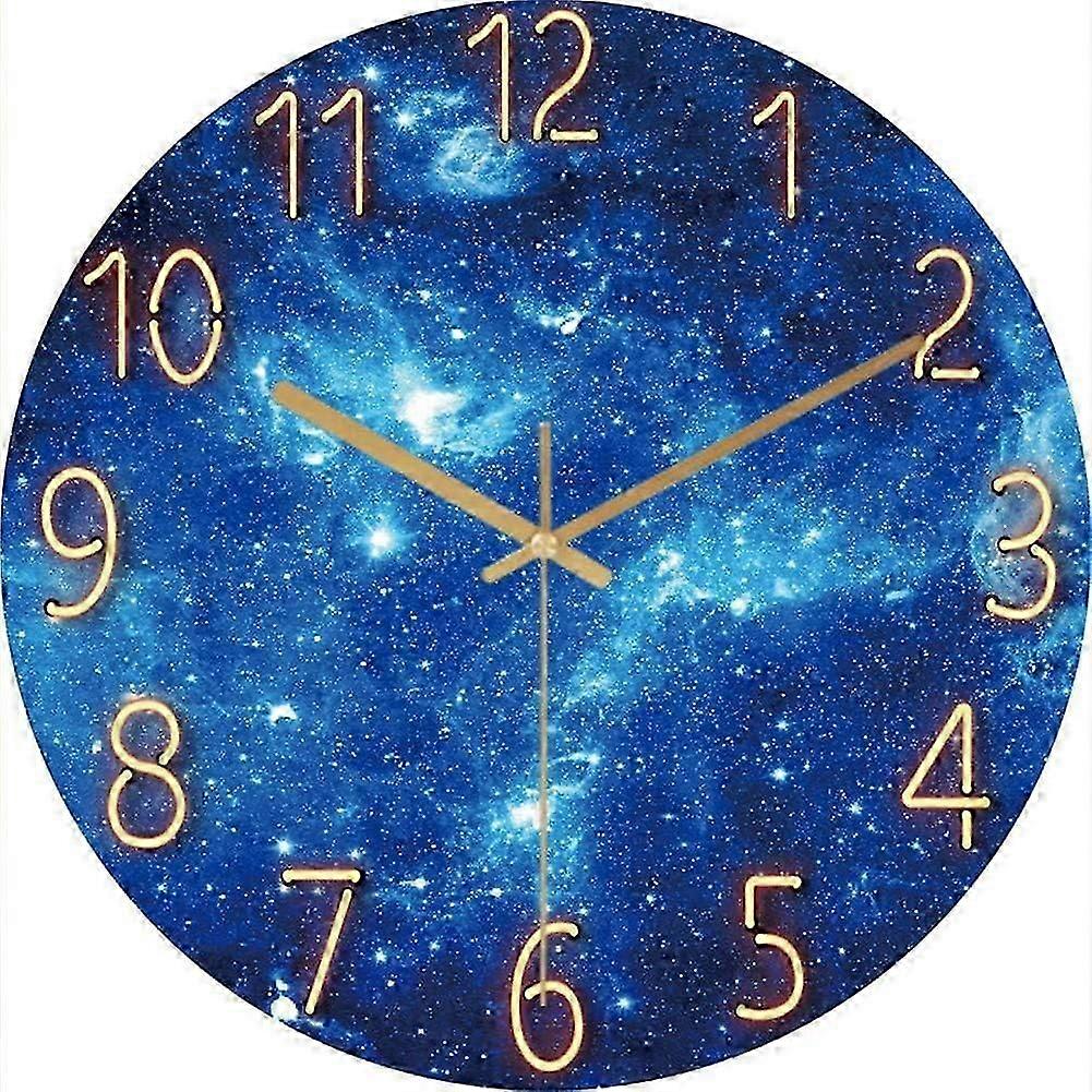 2025 New Wall Clock Silent, 12-inch Wall Clock without Ticking Noise, Galaxy Stars Outer Space Starry Sky