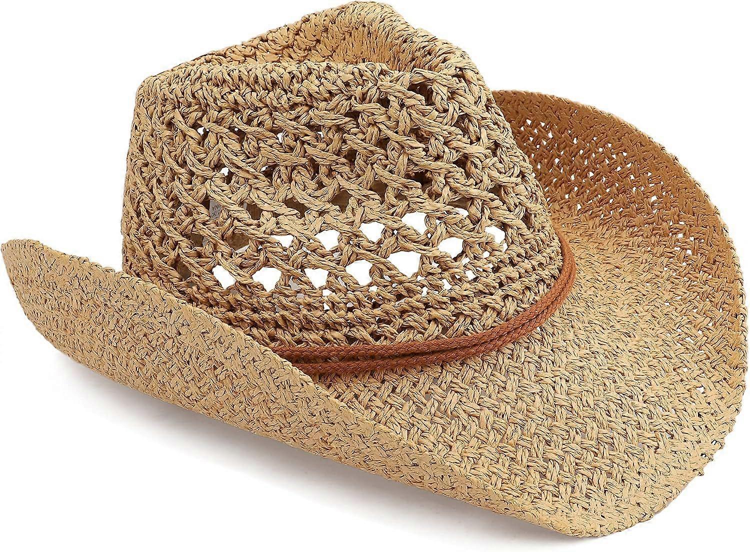 2025 Latest Model Adult Sun Straw Western Cowboy Hat Khaki One Size