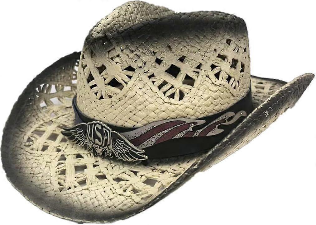 2025 Latest Model Western Woven Straw Hat Cowboy Cowgirl Printed Hat Round Up Sun Hat with