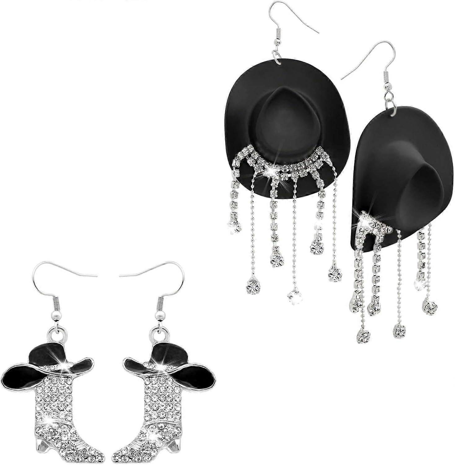 2025 Latest Model Western Cowgirl Cowboy Hat Earrings Set Sparkly Rhinestone