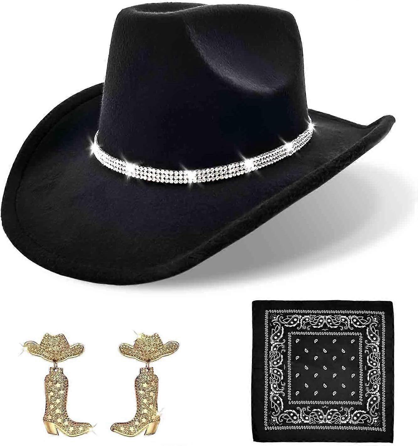 2025 Latest Model Rhinestone Cowboy Hat and Earring Set with Bandana, Western