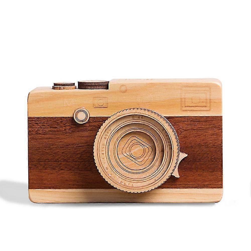 2025 Latest Model Retro Wooden Camera Shape Classical Melody Clockwork Music Box
