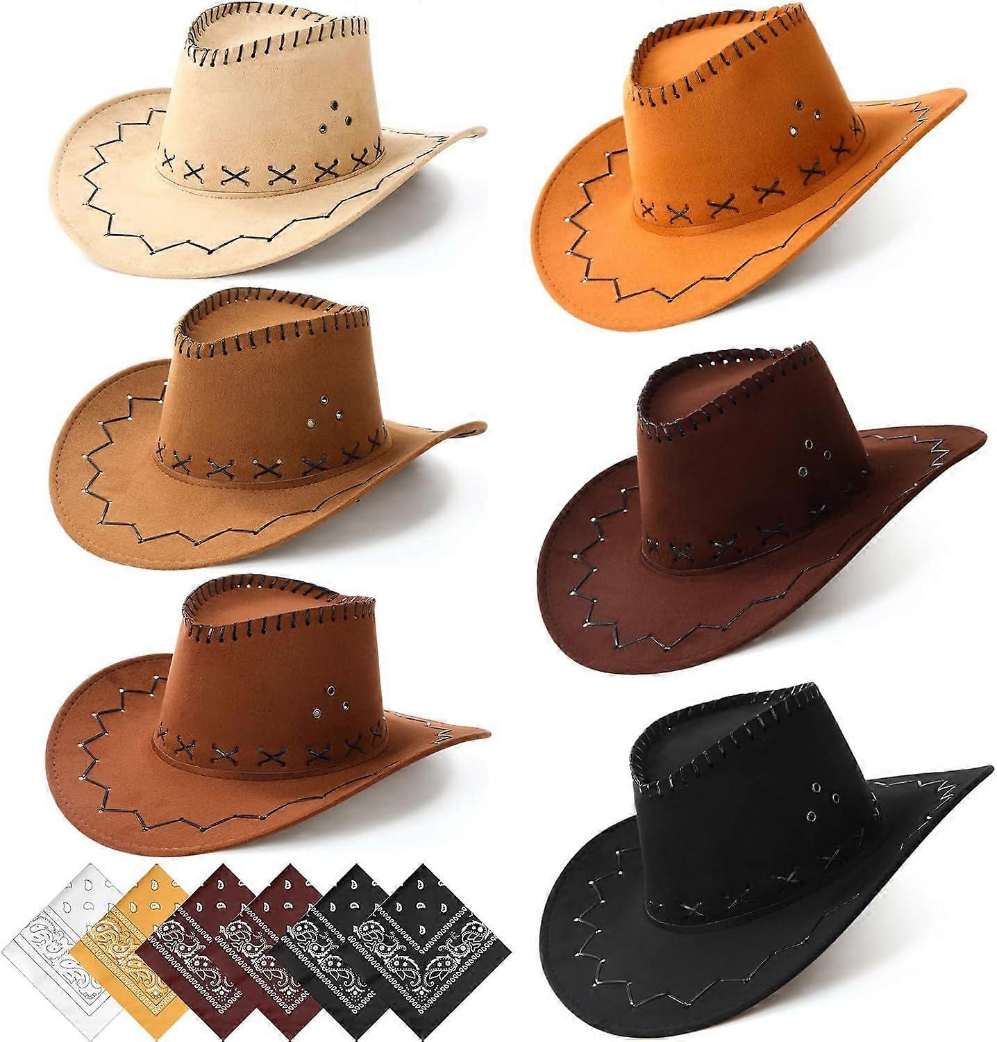 2025 Latest Model 12 Pieces Cowboy Hats and Bandanas Bulk Western Cowboy Cowgirl