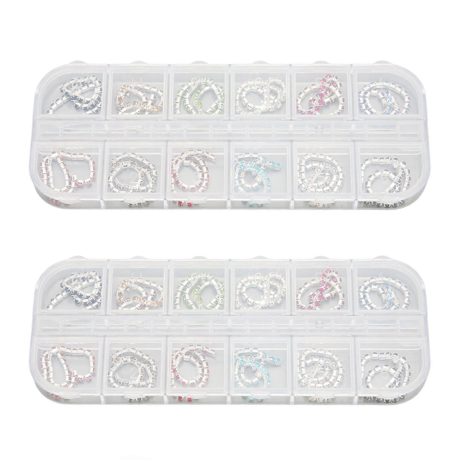 2025 Latest Model 2 Boxes Nail Art Rhinestones Chains Multifunction 12 Colors ...