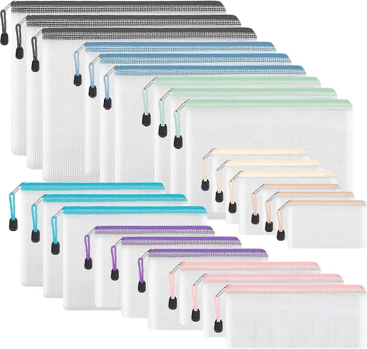 2025 Latest Model 24pcs Mesh Zipper Pouch, Waterproof Zipper Bags, 8 Sizes