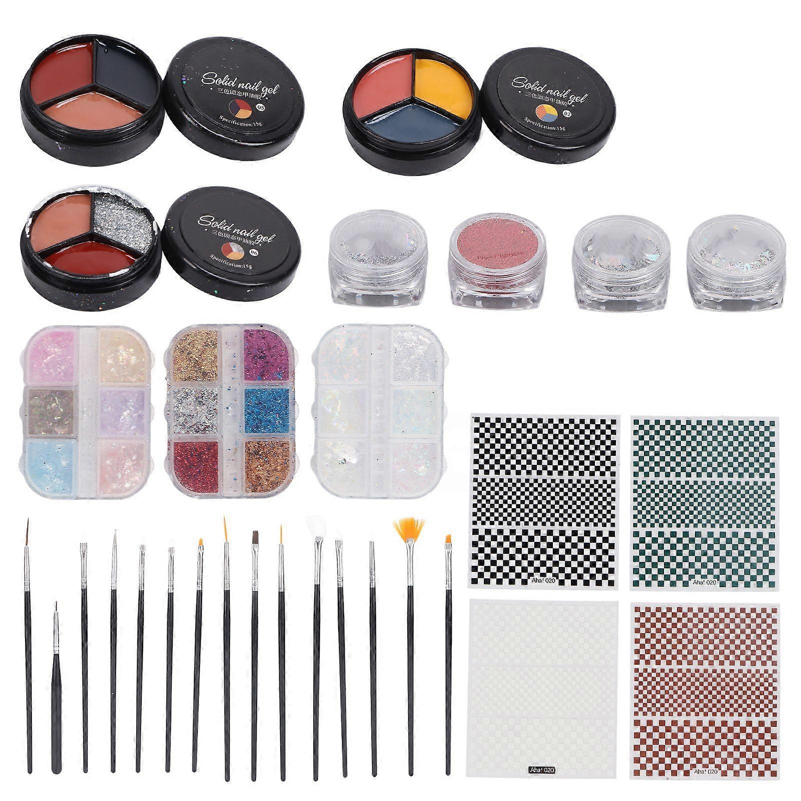 2025 Latest Model 29pcs Nail Art Tool Kit Solid Gel Polish Glitter Sequins Sti...