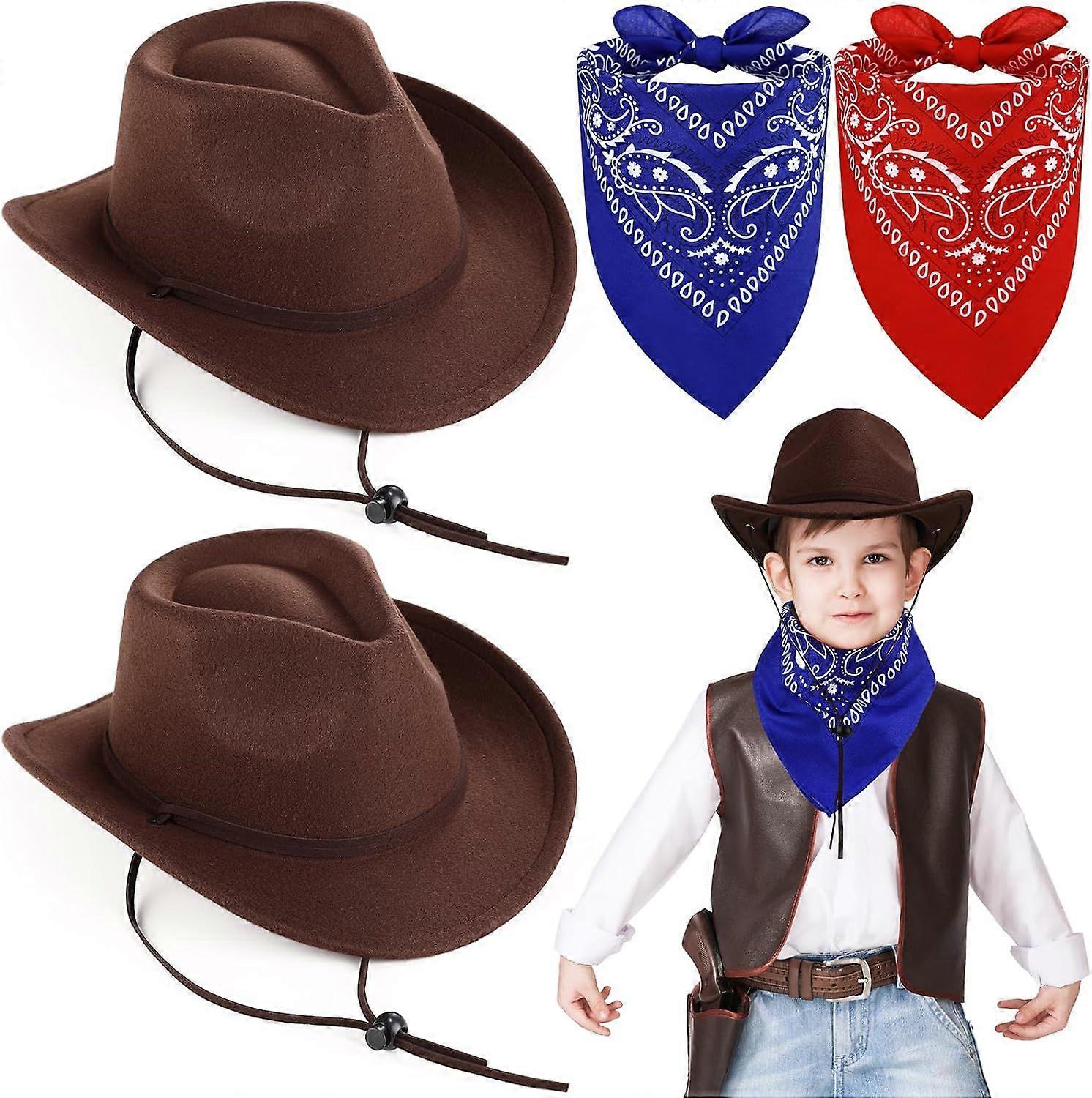 2025 Latest Model 4 Pcs Kids Western Cowboy Hat Set Toddler Boy Costume Outfit