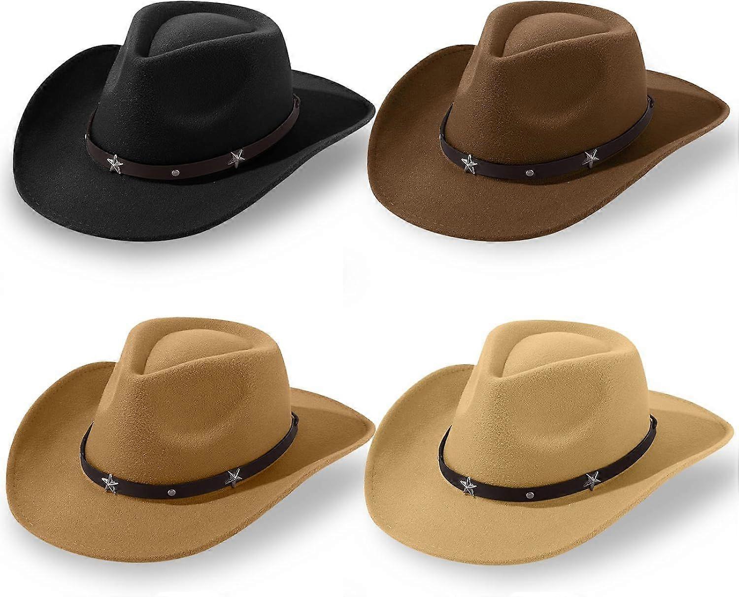 2025 Latest Model 4 Pcs Classic Western Cowboy Hat Men Felt Wide Brim Cowgirl