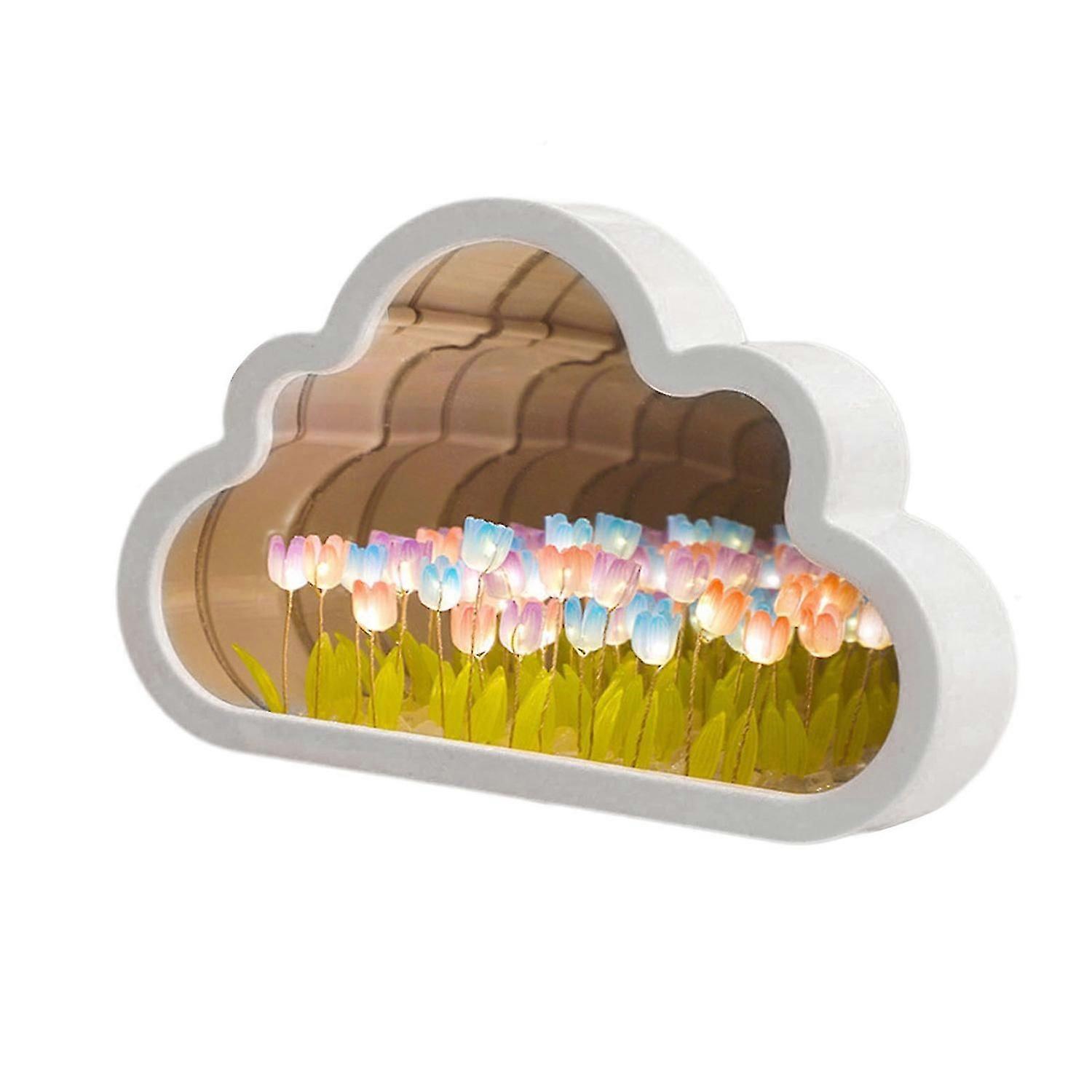 2025 Latest Model DIY Cloud Tulip Mirror Night Light Desktop Ornament Flicker