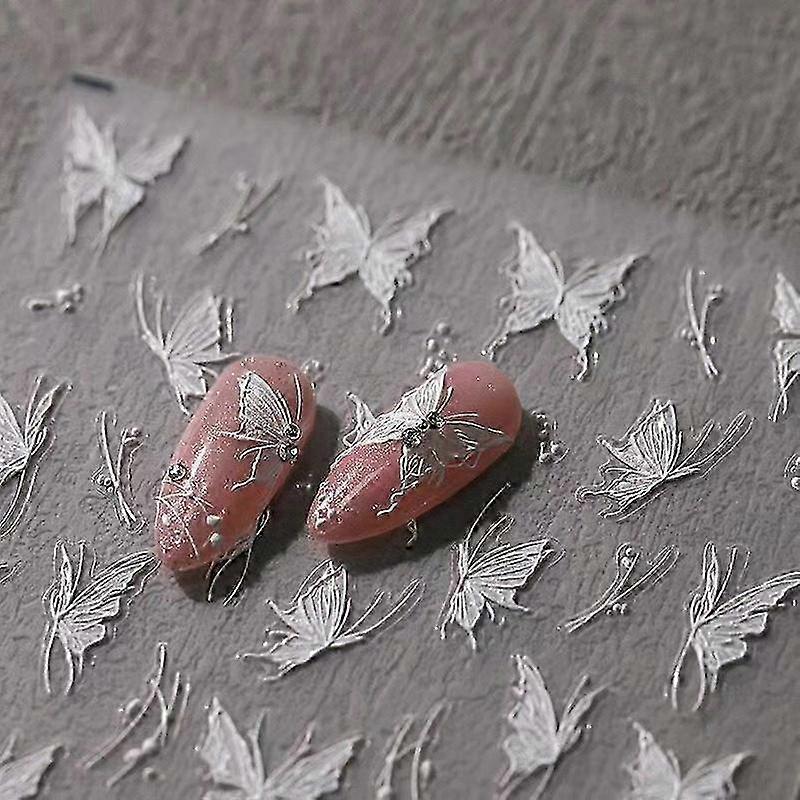 2025 White Butterfly Shape Nail Sticker Stereoscopic Relief Decal Adhesive Nail Art Salon DIY Nail Art Enthusiasts