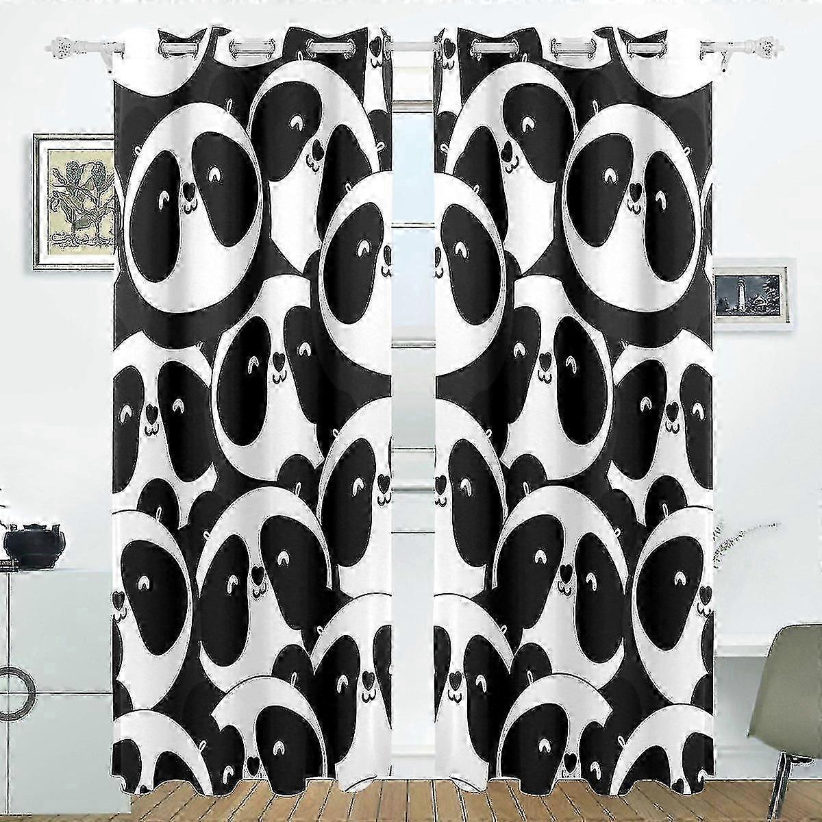 2025 Black And White Panda Pattern Window Curtain Blackout Curtains Darkening Thermal Blind Curtain For Bedroom Living Room,2 Panel 130x210 Cm