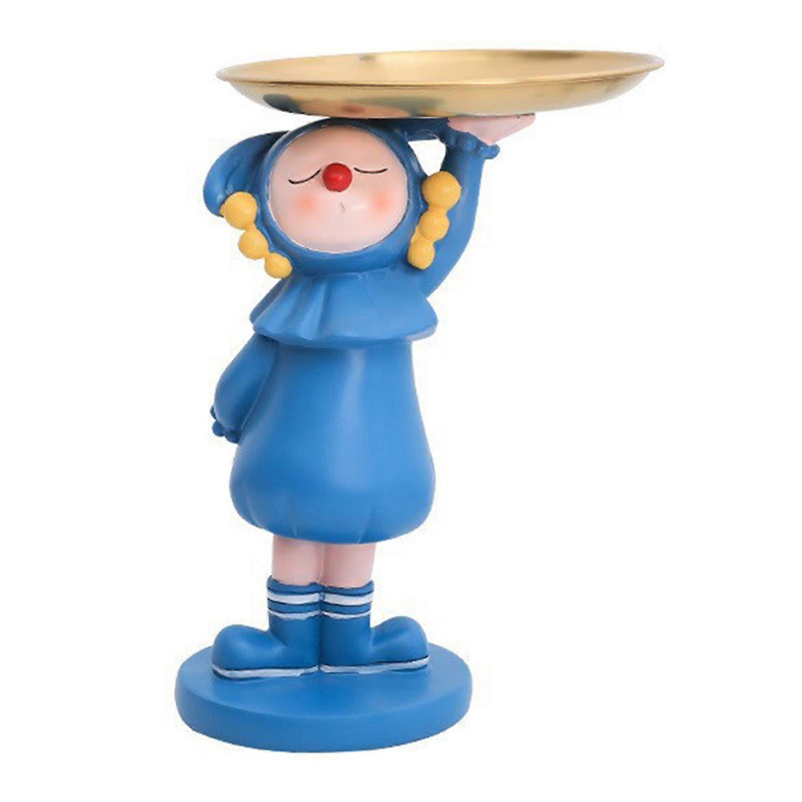 2025 Cute Resin Girl Figurine Ornaments Cartoon Girl Sculptures with Glasses Storage Tray for Creative Entrance for Key Snack Blue
