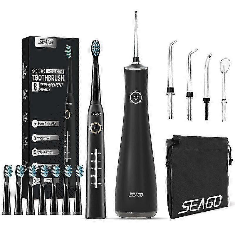 2025 Water Flosser Teeth Cleaner with 5 Nozzles Portable Dental Water Jet & Sonic Electric Toothbrush Brush with 8pc Heads Toothbrushes