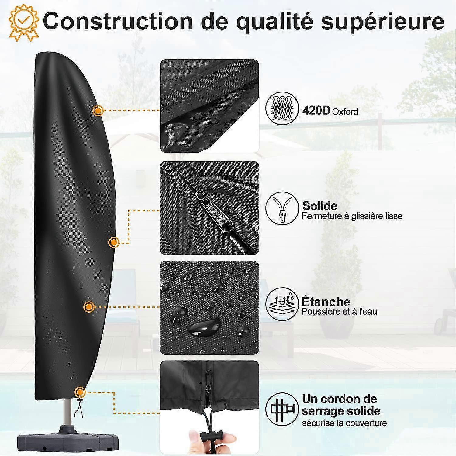 2025 Offset Umbrella Cover, Heavy Duty 420D Oxford Fabric,Waterproof,UV Protective Umbrella Cover Deporte with Ventilation Grilles Black,265x50/70/40c
