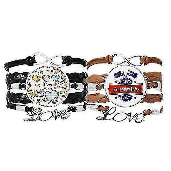 2025 Australia Happy Australia Day Flag Bracelet Hand Strap Leather Love Pattern Wristband Double Set