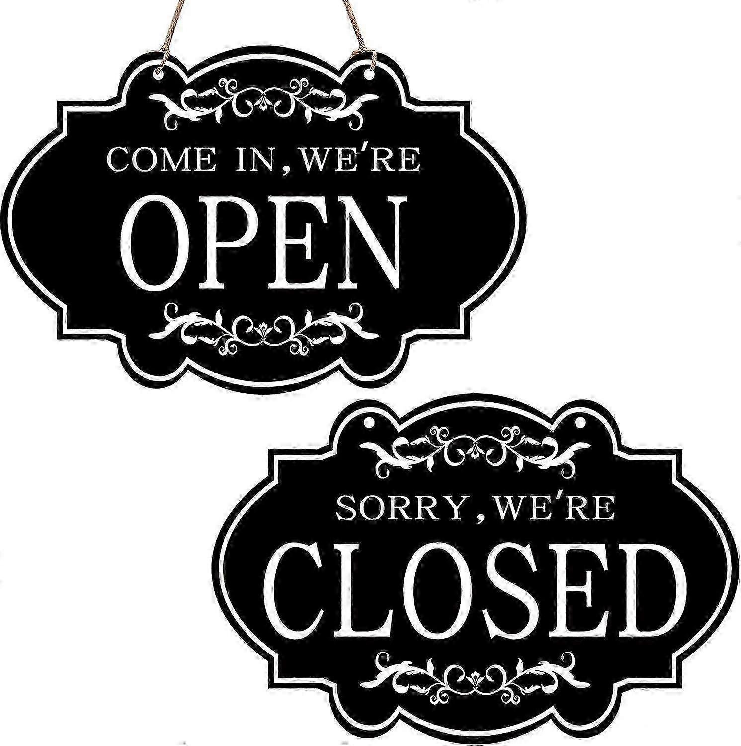 2025 Open Closed Sign (30 x 20 cm), Double Sided Reversible Come In We're Open and Sorry We're Closed Shop Hanging Sign for Restaurant Club Cafe Hotel