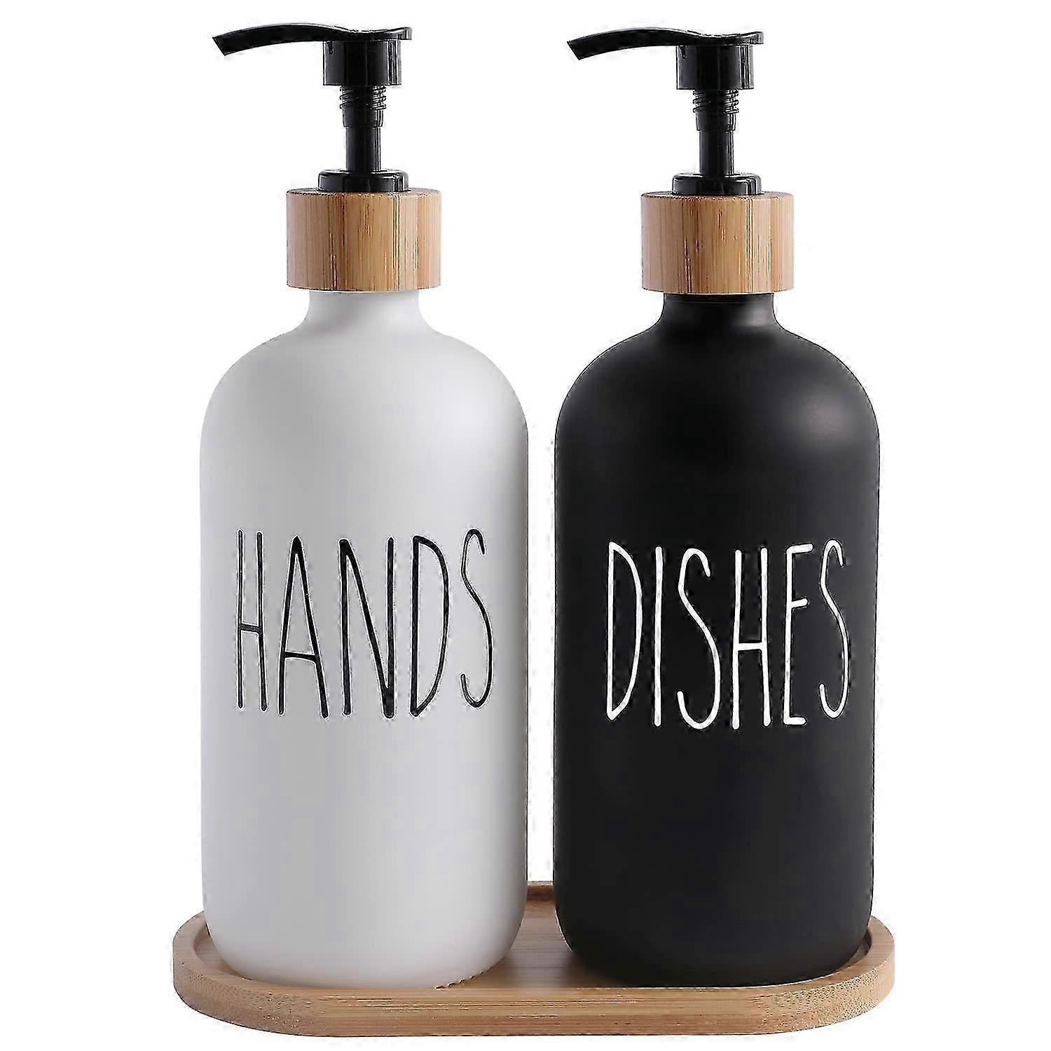 2025 Glass soap distributor set conta hand soap & dishwasher distributor for black and white kitchen decor.