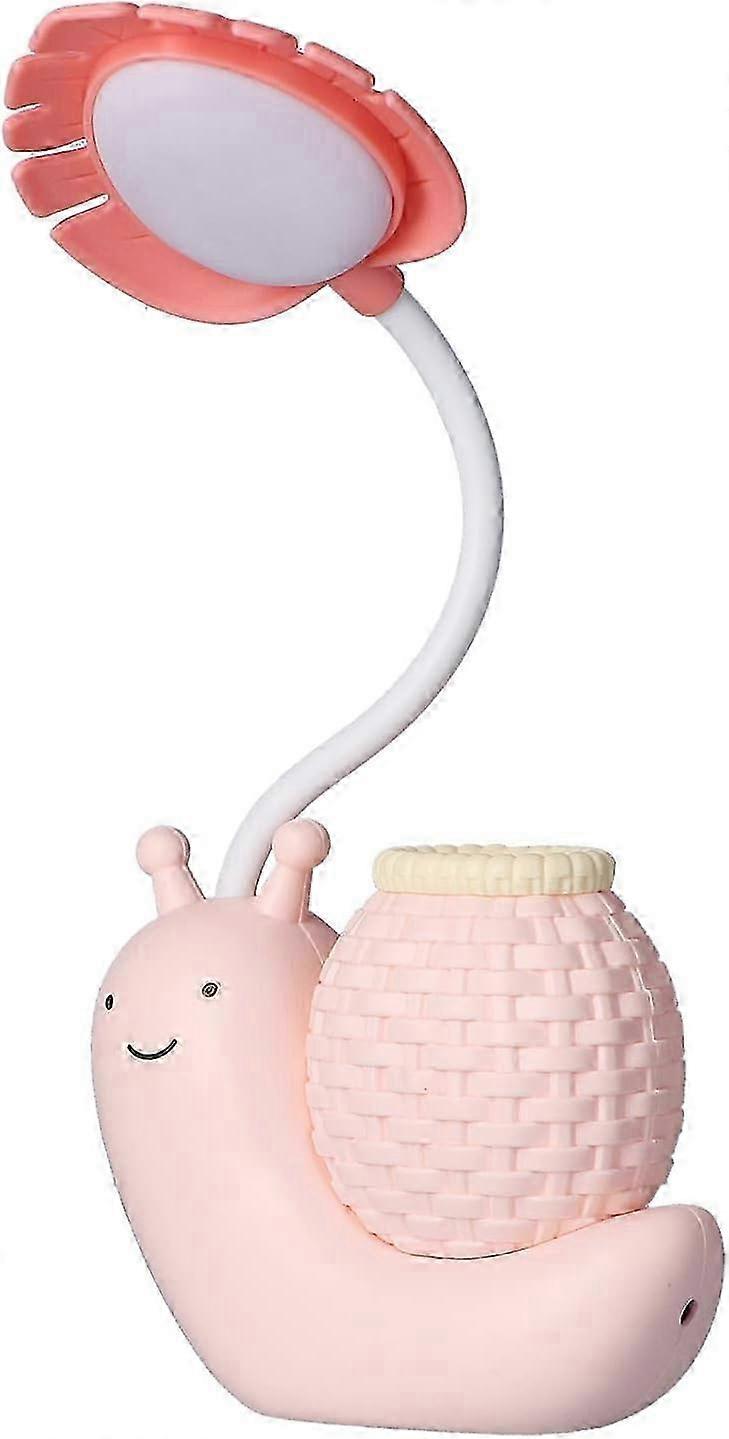 2025 Snail LED Desk Lamp with Pencil Holder - Cute Gooseneck Table Lamp for Kids (Pink)