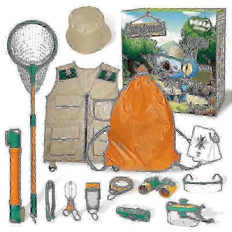 ame: Kids Outdoor Adventure SetMaterial: ABSUse for: Kids Outdoor Adventure, Insect Hunting, Campingfeature:A variety of tools, rich and varied, help activate your baby's bright mind. Including binoculars, periscopes, whistles, insect boxes, lights, and moreOutdoor shooting, compact and portable. Adjustable length insect net helps baby catch insects.Simulation design, give the baby his own tools, experience the fun of catching insects, and give the child an interesting childhood Note: Due to the light and screen setting difference, the item's color may be slightly different from the pictures. Please allow slight dimension difference due to different manual measurement. Sold by-YJL official store