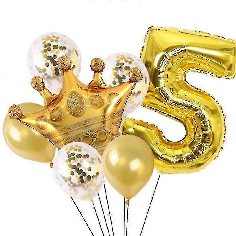 INCLUDE: One number balloon, one crown, three balloons with sequins, two solid color balloons(Pump not included ) Balloon with sequins: 12 inches;Solid color balloon: 10 inches;Crown: 60*52cm;Number: 30 inches, height is about 70cm.Suitable for children aged 0-9Material: The balloon is made of high-quality aluminum foil, with bright colors, environmentally friendly, non-toxic, safe and reliable.Features: The balloon has a crown, which is more beautiful and unique. Simple to operate, it seals automatically after inflation, and can be reused after deflation.Applicable scene: Birthday party decoration, wedding anniversary, anniversary celebration, photo booth props, etc.Inflation Tip: Inflate with a straw or a hand pump, which can be filled with air or helium; full of helium can fly into the sky. Each set of balloons comes with a straw to help you fill with air, and when the balloon needs to be deflated, the straw can be inserted into the inflation hole to release the air. Note: Due to the light and screen setting difference, the item's color may be slightly different from the pictures. Please allow slight dimension difference due to different manual measurement. Sold by-YJL official store