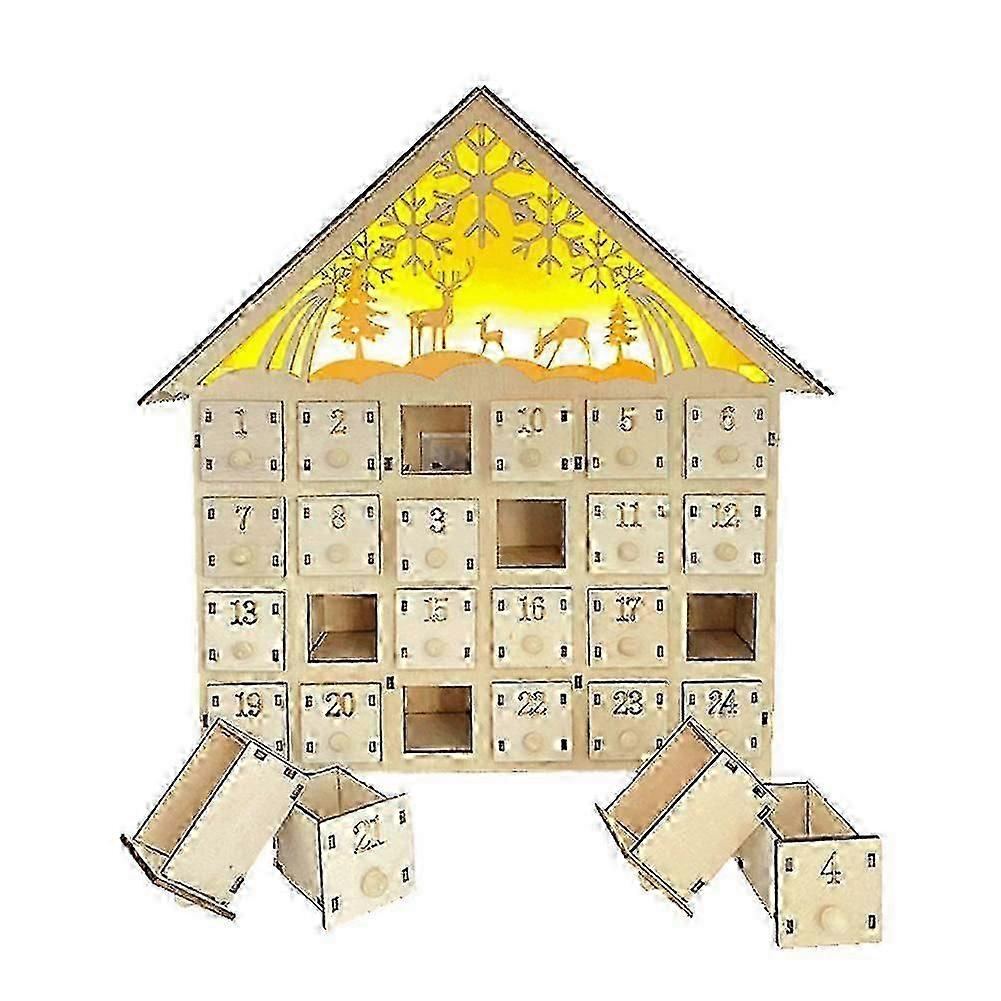 2025 Christmas Wooden Advent Calendar Led Lighted Village House Santa Claus Countdown Ornament With Drawers Box Decorations Gift
