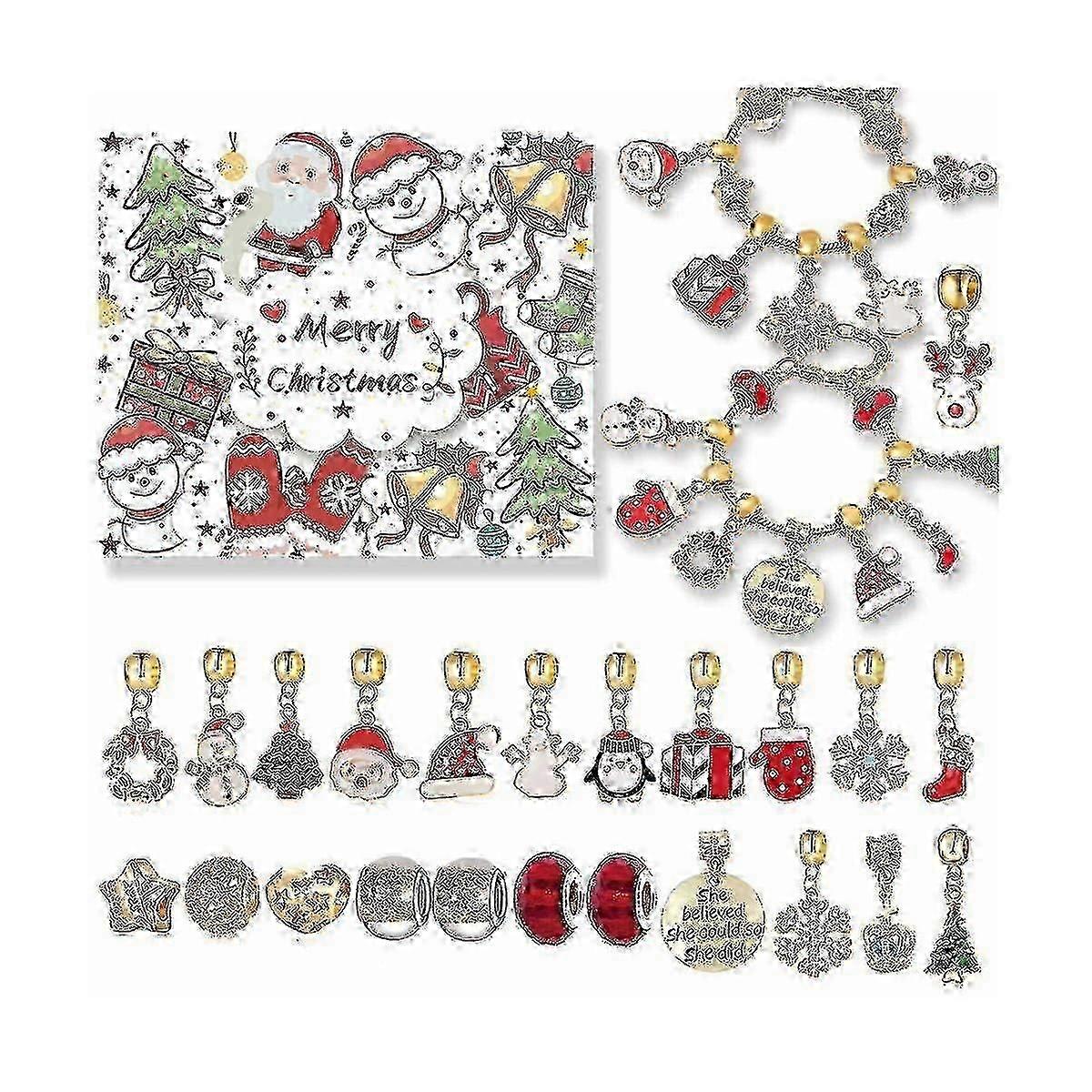 2025 Christmas Calendar, Girls Christmas 24 Days Countdown Calendar Diy Charm Bracelet Blind Box, 22 Charm Beads,bchrui1875