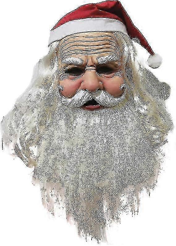 2025 Christmas Santa Claus Mask, Realistic Latex Mask Full Over Head Masks With Red Santa Hat And Beard Overhead