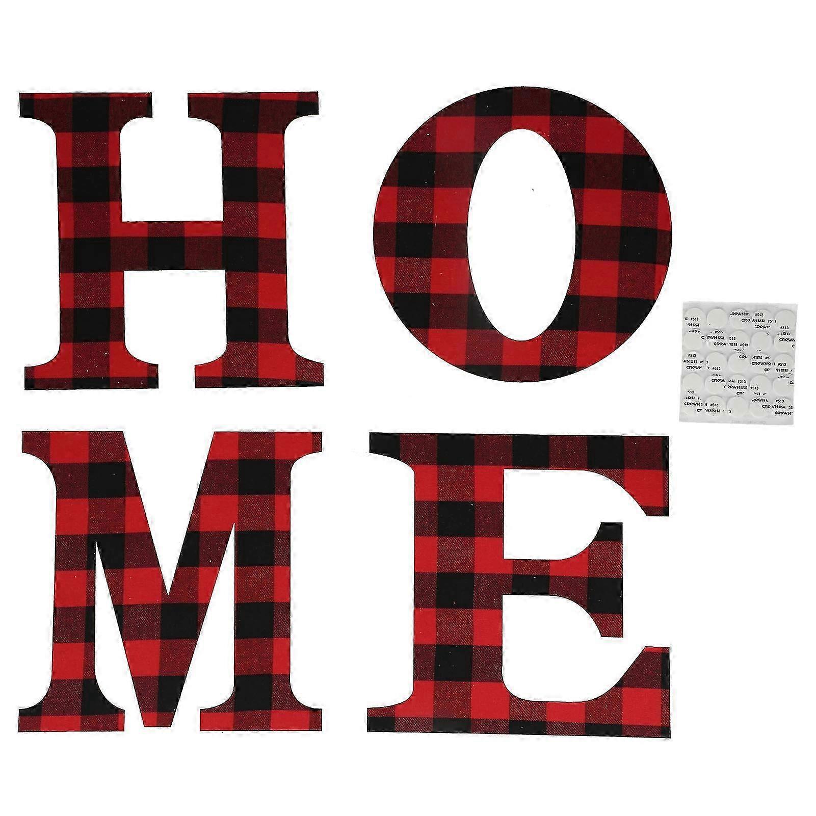 2025 Christmas Home Letter Sign Plaid Wooden Hanging Letter Sign Wall Window Decoration
