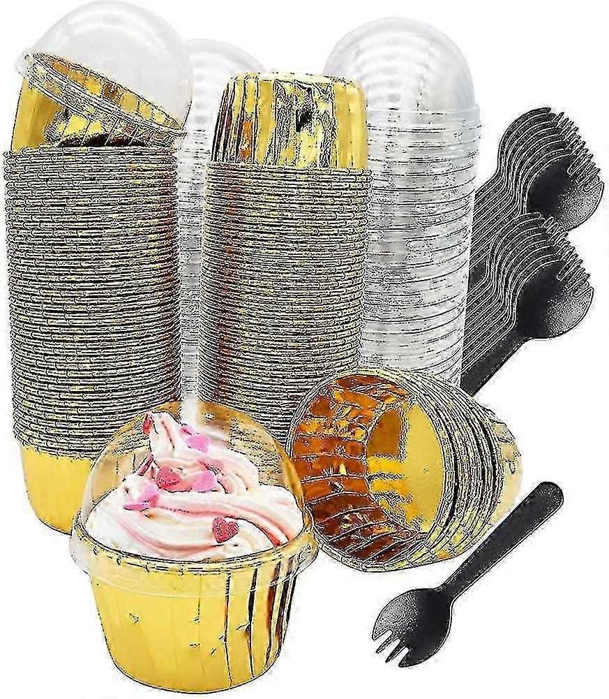 2025 Cake Liner, Cake Liners With Dome Lids 100pack,Free-Air 3.5oz Foil Baking