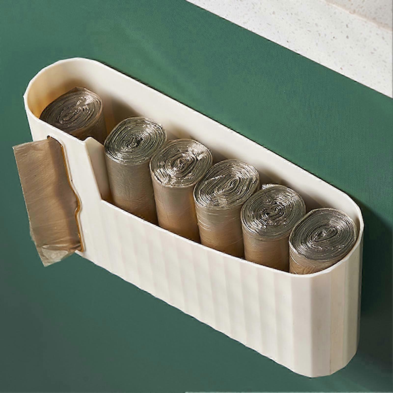 2025 Garbage Bag Dispenser Wall Mounted Plastic Trash Bag Holder for Kitchen Bathroom Cream Color