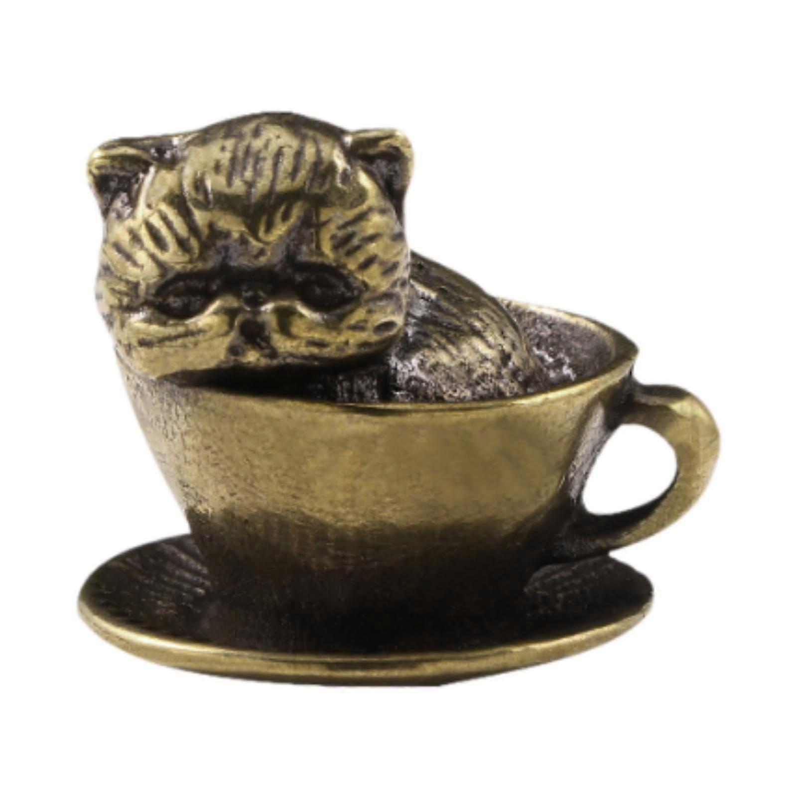 2025 Coffee Cup Pet Sculpture Antique Crafts Copper Pendant for Table Office Home Coffee Cup Cat