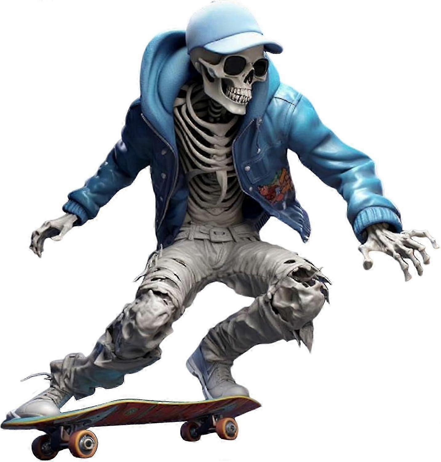 2025 Skeleton Statue Resin Skateboard Cool Skeleton Figurines Small Skull Skeleton Decor for Halloween Party Office Crafts--
