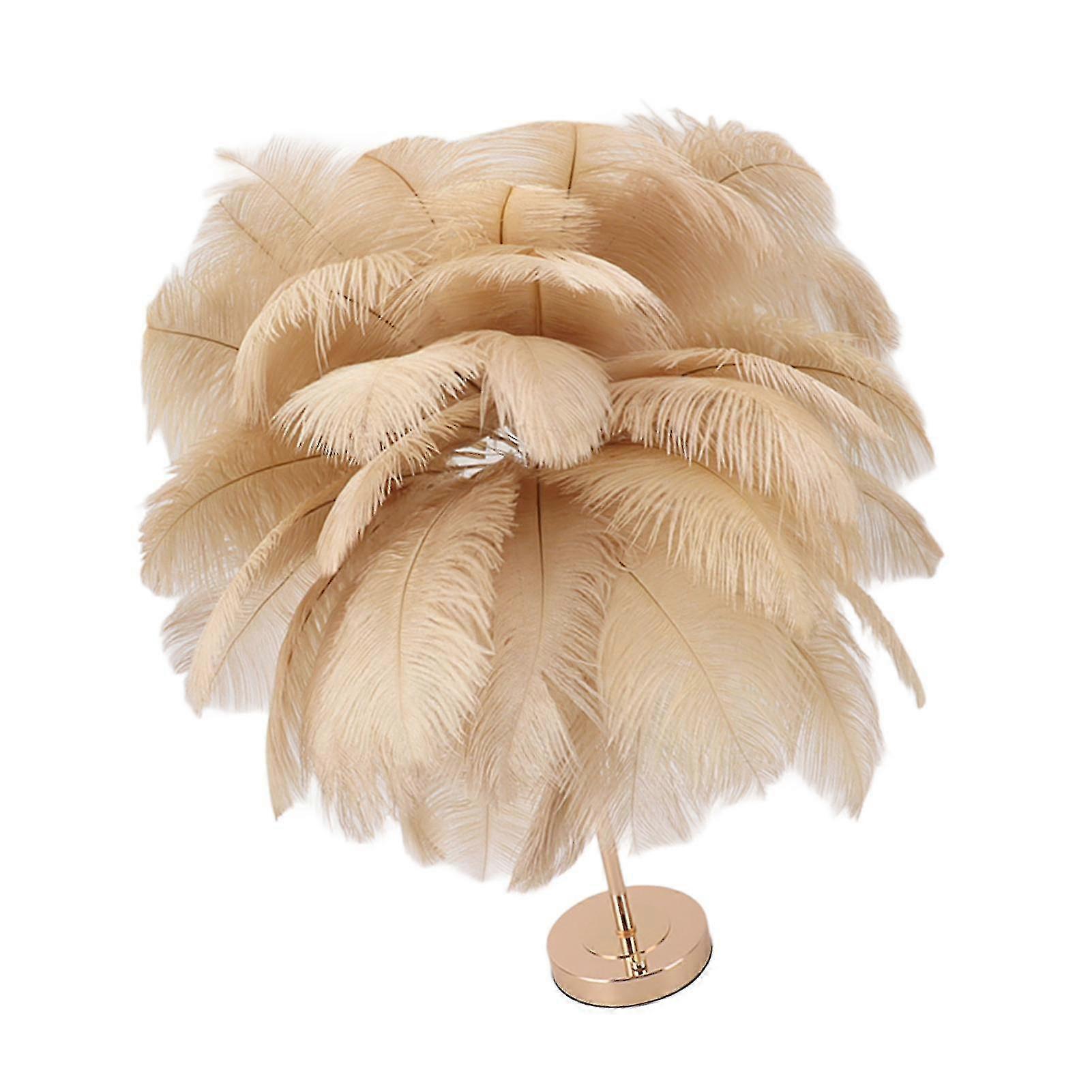 2025 Ostrich Feather Table Lamp Rechargeable Modern Romantic Decoration Lamp Bedroom Bedside Lamp for Home Decoration Light Tan