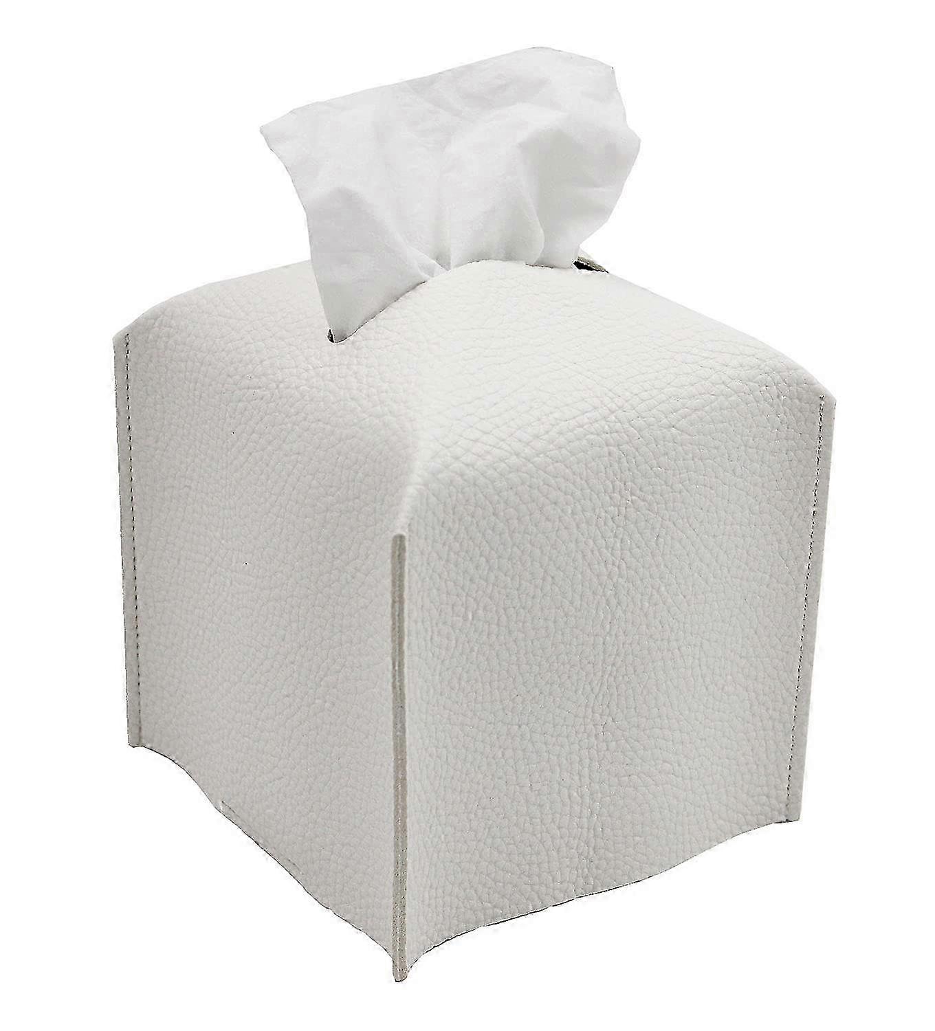 2025 Tissue Box Cover, [Exquisite] Modern PU Leather Square Tissue Box Holder - Decorative Holder/Organizer, 5"X5"X5" - White
