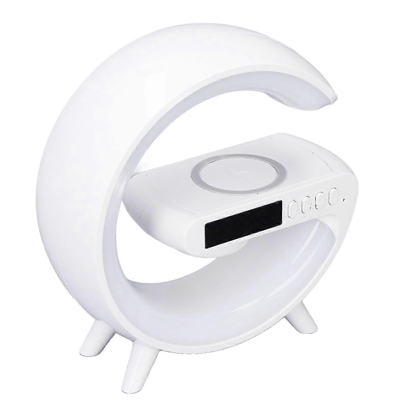 2025 Table Lamp LED Clock 13 Color Modes BT Speaker with 15W Wireless Charger for Work Study Life DC 5V White
