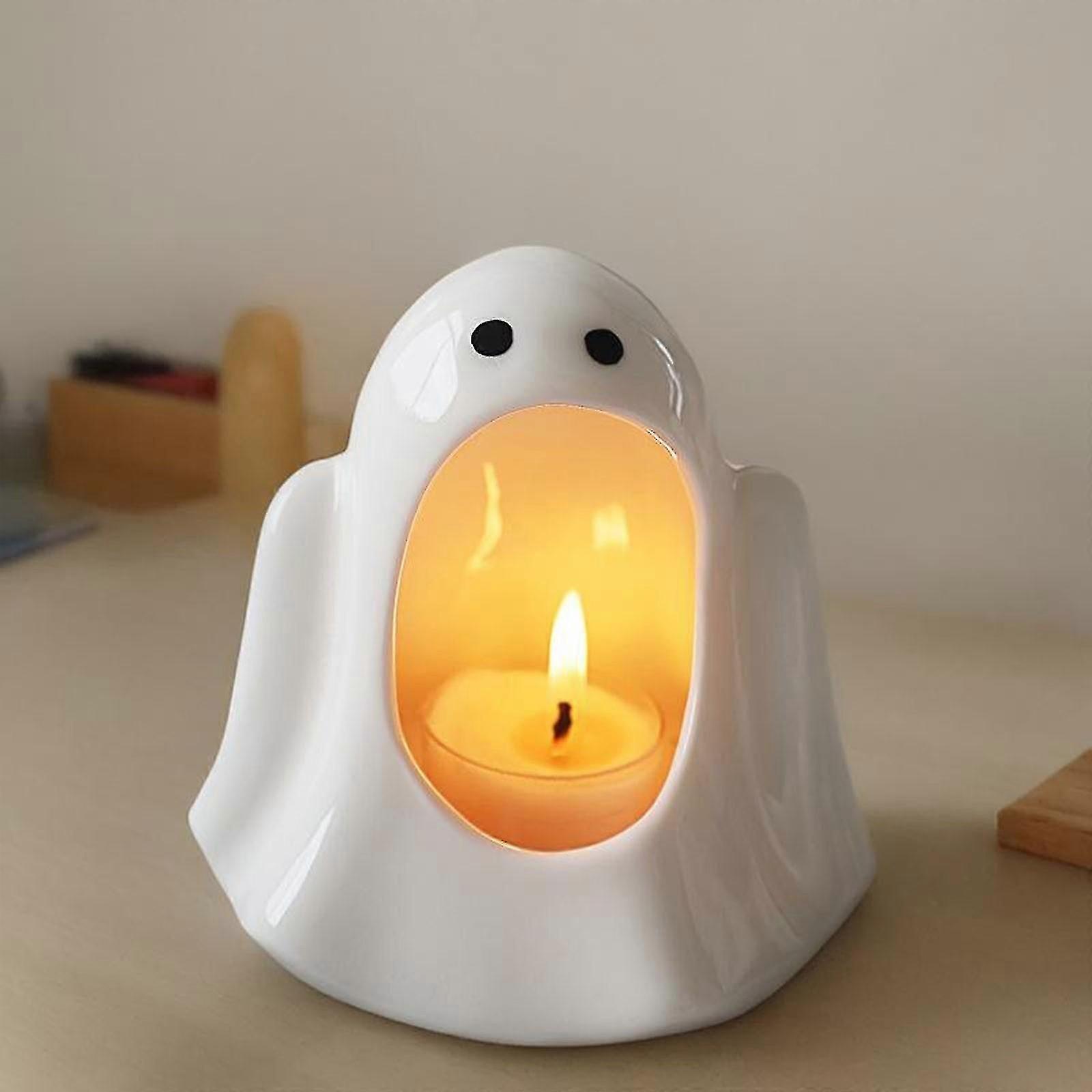 2025 Halloween Ceramic Ghost Candlestick Funny Cute Halloween Gift Candle Aromatherapy Decoration--