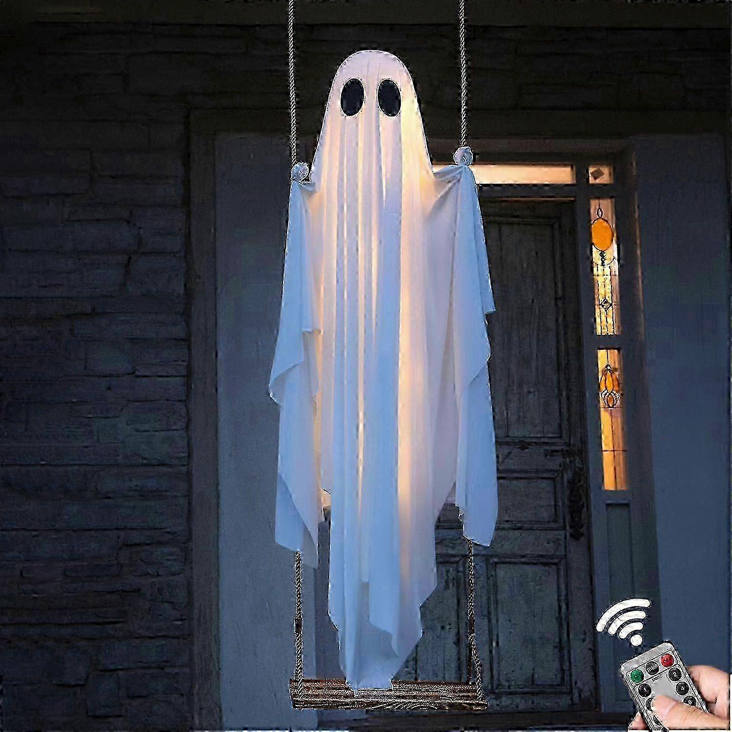 2025 Halloween Decorations Outdoor - Large Hanging Swing Ghost Halloween Decor with String Lights - Spooky Cute Ghosts Decorations for Front Porch Yar