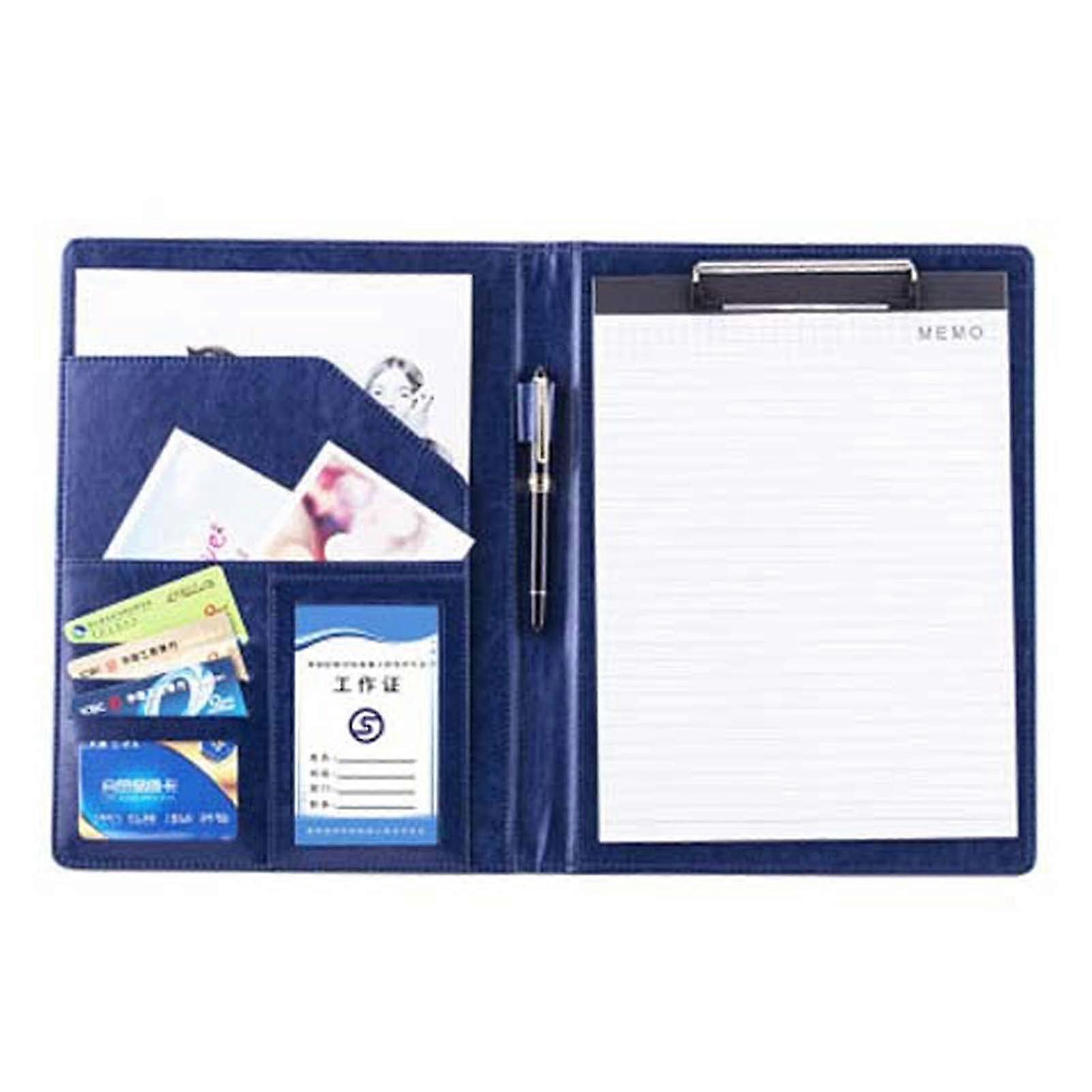 2025 Business Folder for Women Conference Folder A4 Leather Business Portfolio Writing Clipboard Professional Organiser with Pen Card Holder Blue