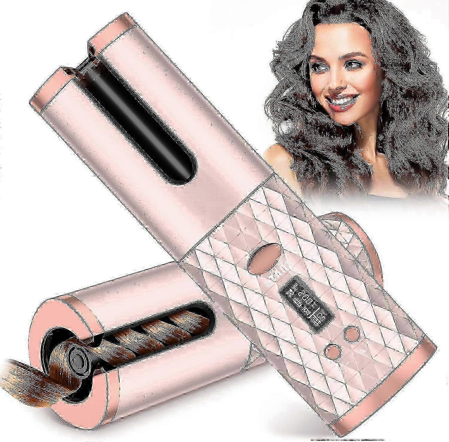 2025 Pink Automatic Curling Iron, Cordless Auto Hair Curler With 6 Temps & Timers, Portable Wireless Ceramic Barrel Wave Hair Curling Iron, Fast Heati