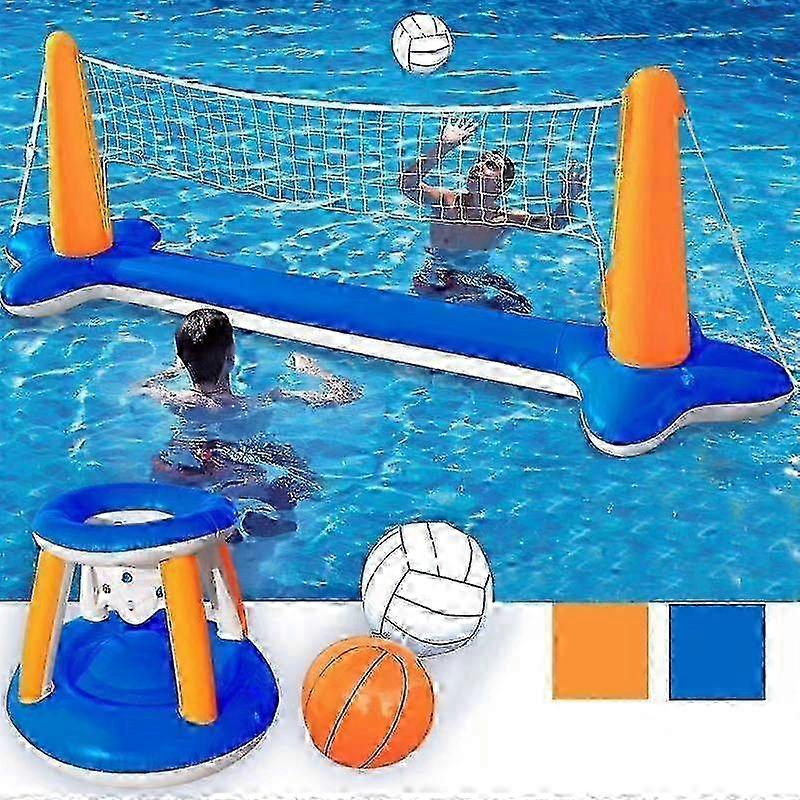 2025 Pool Float Set, Volleyball Net & Basketball Hoops & Balls for Children and Adults, Water Polo Game Pool Toy, Volleyball Basketball Pool Toy Women