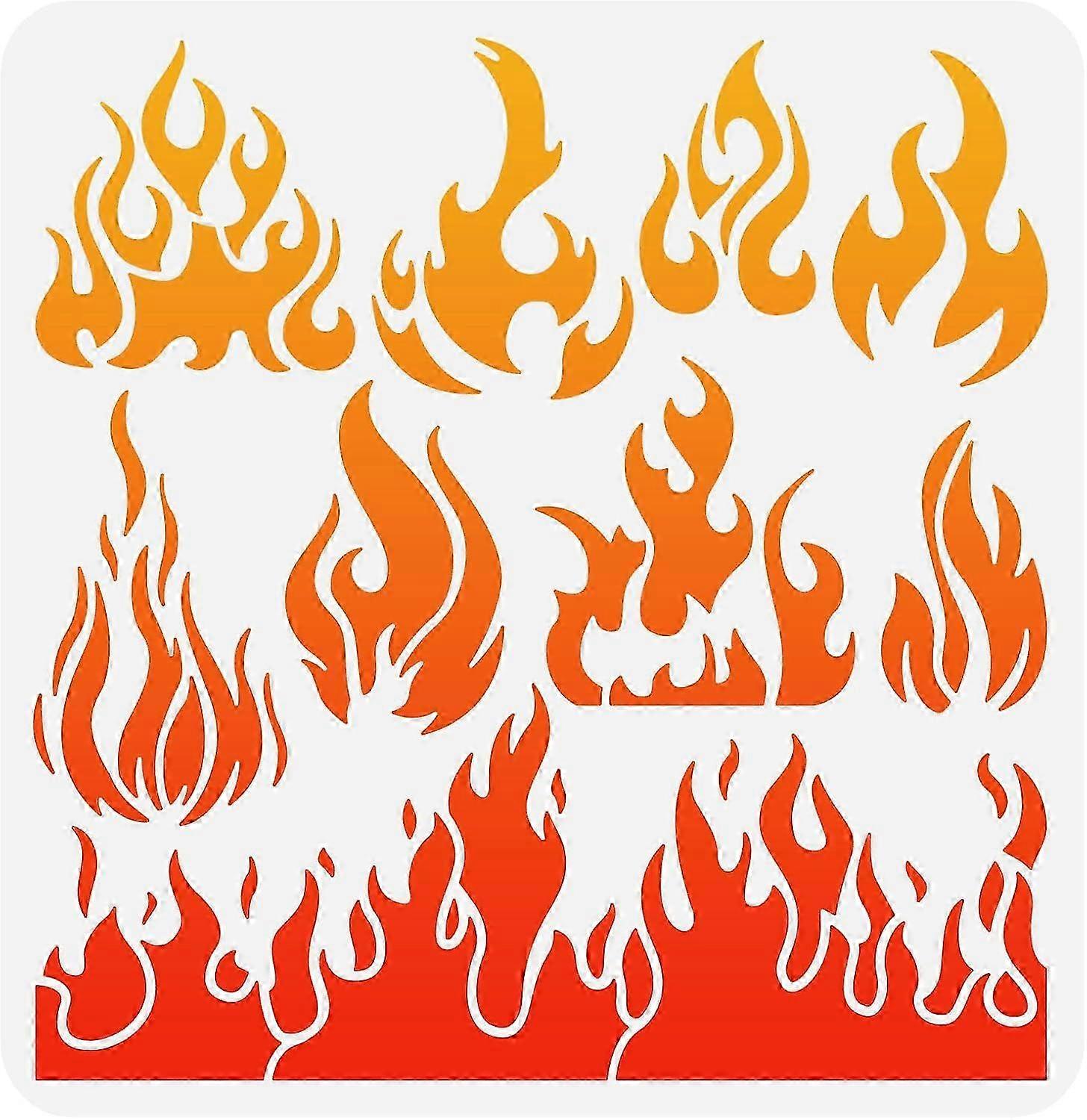 2025 Flame Stencil 11.8x11.8 inch Reusable Fire Stencil Plastic 9 Styles Fire Pattern Stencil Flame Painting Decor Template for Arts Window Wall Craft