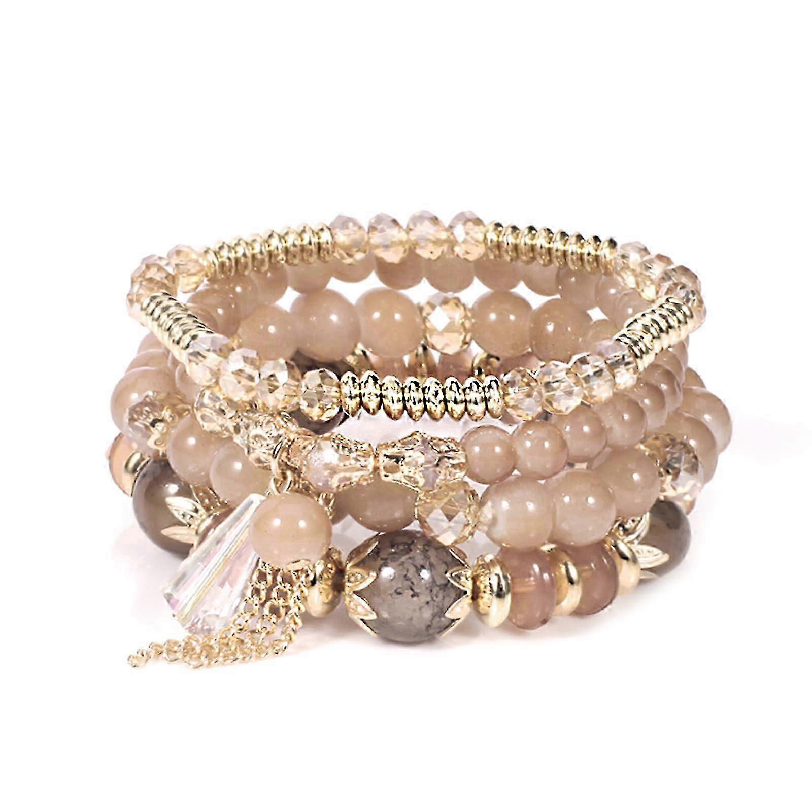 2025 Boho Crystal Beads Bracelet, Pack of 4 Boho Tassel Bracelets for Women