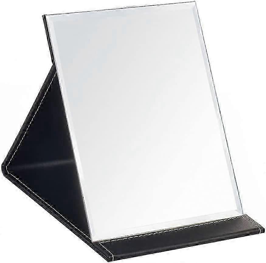 2025 Portable PU Leather Mirror Folding Desktop Vanity Mirror with Adjustable Stand for Personal Use, Travel (L, Black)