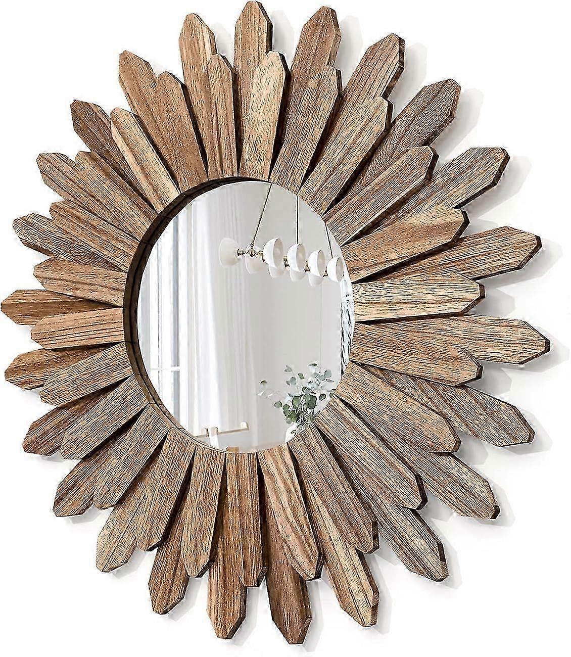 Home Decorations for Living Room: This decorative mirror made of natural solid wood torched finished features carbonized black color, and the beautiful wood texture makes it an antique accent. This stylish and eye-catching decor piece is the perfect addition to your house Room Decor Aesthetic: The design of wood sunburst base on the element of boho style, it will be a nice boho wall art and goes well with your others boho decor style; decent decorative piece with perfect size for wall mounted or lean on wall at desk, a perfect room decorations for your bedroom, living room, bathroom, kitchen and more Wood Wall Art for Decor: This vintage mirror made of high quality high polish silver glass which can prevent distortion, which give you a real HD imaging. High quality coating for the ultimate durability and rust protection Easy to Hang: Measure at 43 cm diameter with wood frame and diameter of 22 cm for mirror; Hang this stunning mirror in your bedroom over your bed, in your hallway or entryway, over your living room sofa.No any assembly, quite easy to hang on the wall Aesthetic Gift for Choice: This home decorations could be an ideal gift to your friends at birthday,Christmas,Thanksgiving Day or New Year gift Note: Due to the light and screen setting difference, the item's color may be slightly different from the pictures. Please allow slight dimension difference due to different manual measurement. Sold by-DIMEANI official store