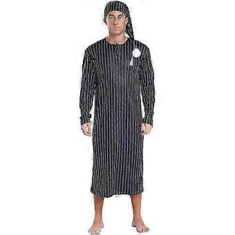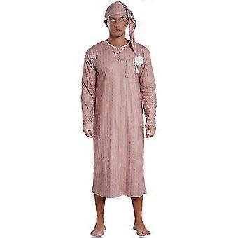 2025 Men's Henley Sleep Shirt Nightgown Striped Big&Tall Long Sleeve Nightshirt with Night Hatl